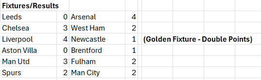 Fixtures Results Week 6